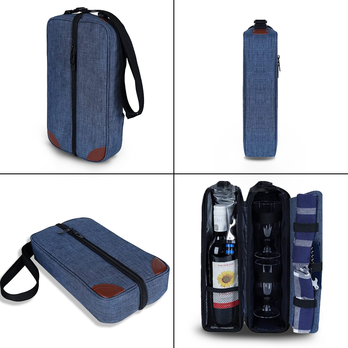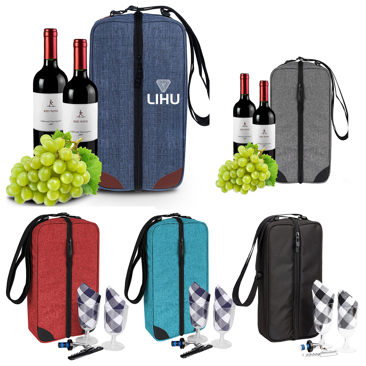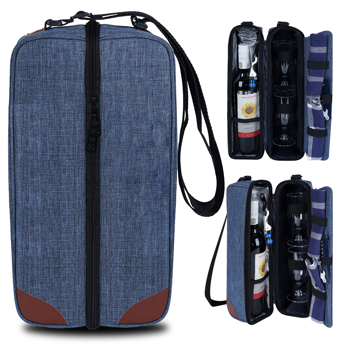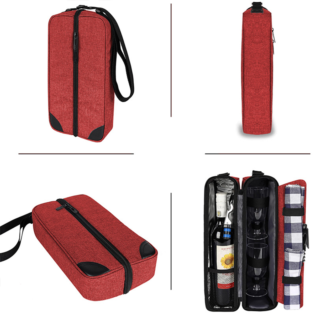 حقيبة نبيذ مع مبرد ومجموعة أدوات مائدة للنزهة تحمل أدوات المائدة، تتضمن 2 كأسين من النبيذ البلاستيكي و1 فتاحة فولاذية و1 سدادة زجاجة و1 منديل، تحافظ على زجاجتين أو علب متنوعة باردة لعدة أيام، يرجى ملاحظة أن النبيذ في الصور لأغراض العرض فقط وغير مدرجة في هذا المبرد، تأتي الحقيبة بحزام كتف قابل للتعديل لسهولة الحمل لسهولة الحمل، مادة حقيبة النبيذ هذه من قماش نايلون أكسفورد، قوية ومتينة.مما يجعلها مثالية للنزهات الخارجية أو الرحلات الشاطئية أو العطلات الرومانسية. يعد قماش أكسفورد النايلون المتين بطول العمر. حقيبة النبيذ هذه مع المبرد ومجموعة النزهات ليست عملية فحسب بل أنيقة أيضًا، مما يتيح لك الاستمتاع بمشروباتك المفضلة في أي مكان بسهولة. قابلة للتخصيص متوفرة.