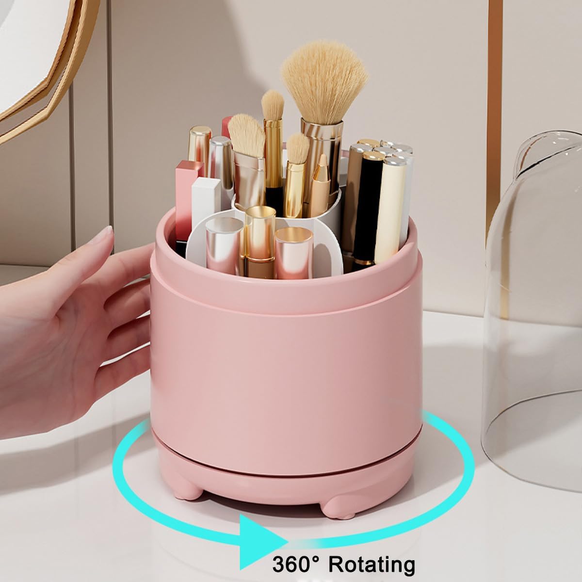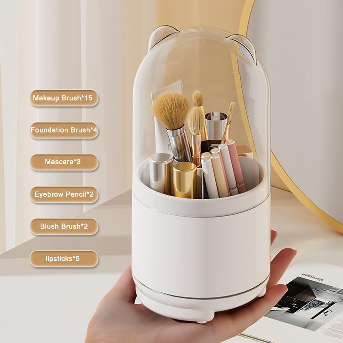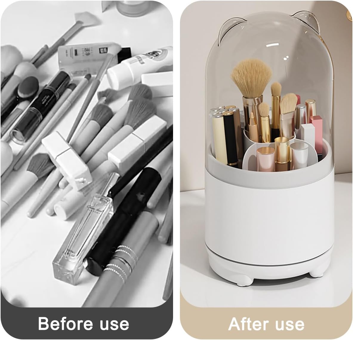 Makeup Brush Holder Organizer has a transparent dust-proof cover to prevent dust from falling on the brush and protect your makeup brush from pollution. Rotating makeup organizer, making it easy to access your brushes without wasting any time during your daily makeup routine. Large capacity 5 slot design compartment storage partition conveniently organizes your makeup brushes, cosmetic cotton, eyeliners, lipstick, and small perfume in separate compartments. Make up brush holder organizer is perfect for any space such as office, school, home, bathroom, living room, bedroom, dresser, worktop and countertop use. Convenient and practical rotating makeup box is the perfect gift for Christmas, New Year, Valentine’s Day, Mother’s Day, birthdays, and many other holidays.